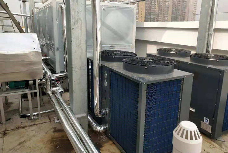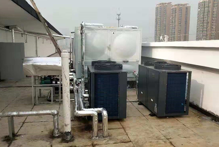 以江蘇宿遷某中學(xué)為例,本項(xiàng)目是校區(qū)宿舍熱水項(xiàng)目,按學(xué)校要求,每一個(gè)宿舍都要滿(mǎn)足充足的熱水供應(yīng)。經(jīng)過(guò)前期的考察,正旭熱泵為該校宿舍樓配置了4臺(tái)10P超低溫空氣源熱泵熱水機(jī)組,能夠輕松滿(mǎn)足學(xué)生每日正常用水量。