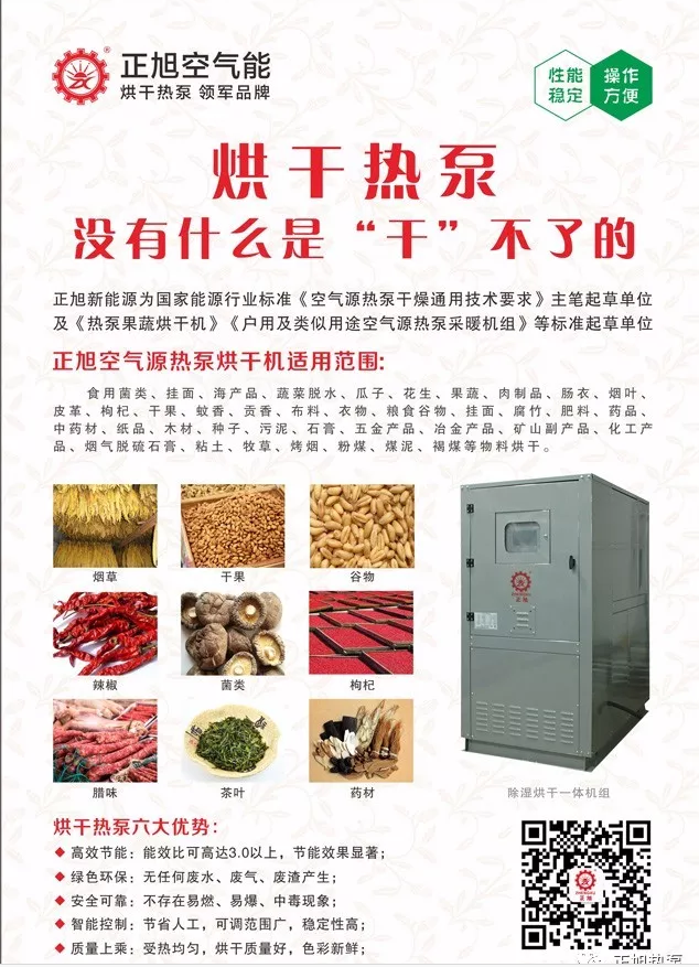 6、舒適方便,自動化、智能化程度高:正旭空氣能熱泵烘干機采用自控恒溫裝置,24小時連續干燥作業。