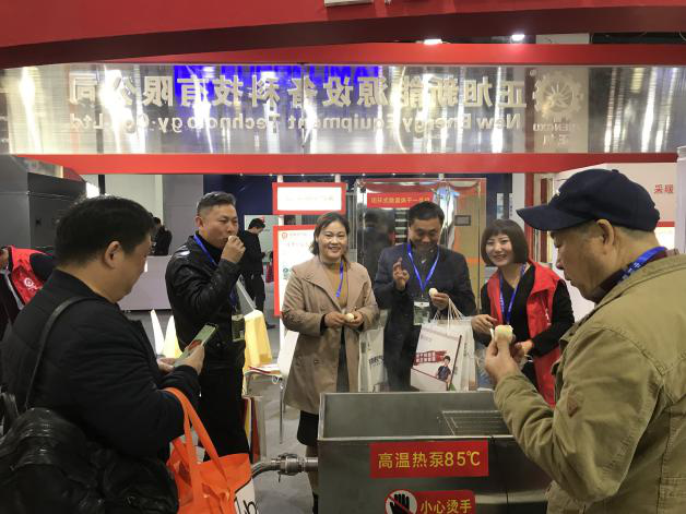 正旭復(fù)疊高溫?zé)岜美渑瘷C(jī)經(jīng)過多年研究努力,突出空氣能熱泵的技術(shù)瓶頸嗎,能夠達(dá)到最高95℃。現(xiàn)場(chǎng)高溫?zé)岜弥箅u蛋,吸引了不少客戶前來(lái)咨詢觀看,品嘗高溫?zé)岜弥蟮碾u蛋讓工程商、經(jīng)銷商們露出滿意的笑容。