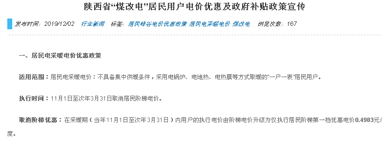 當(dāng)然,考慮到陜西、山東、河北等不同地區(qū)都有不同的階梯電價,同時還有不同省市煤改電補(bǔ)貼政策優(yōu)惠,以陜西省為例,煤改電階梯電價調(diào)整如下(僅供參考):
