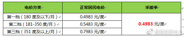 取消階梯優(yōu)惠:在采暖期(當(dāng)年11月1日至次年3月31日)內(nèi)用戶的執(zhí)行電價由階梯電價升級為僅執(zhí)行居民階梯第一檔優(yōu)惠電價0.4983元/度。