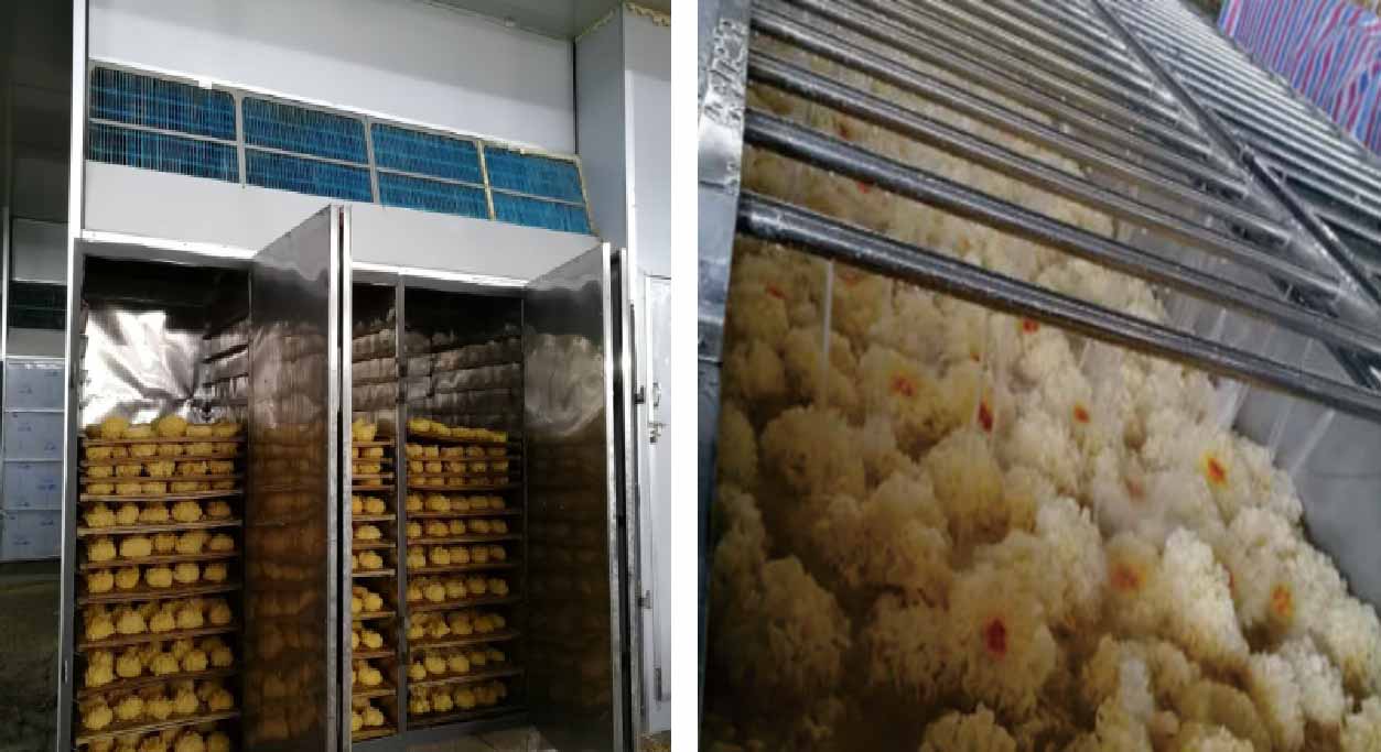 9月22日上午,為了更好地讓研發課題3“菌類多能互補干燥關鍵技術及裝備研究”的教授專家了解正旭熱泵烘干產品、了解正旭多年來在農業烘干行業做出的成果。總經理陳寶天、副總經理陳祥全帶領大家參觀公司了在福建古田的大型銀耳干燥示范工程項目。正旭用戶代表為大家詳細地介紹了正旭銀耳熱泵烘干機的使用效果,現場進行了銀耳烘干演示,銀耳成品展示等,對正旭銀耳烘干機表示充分肯定。