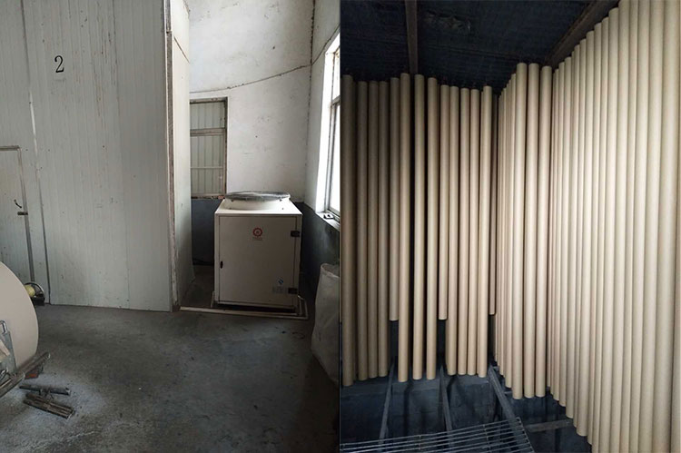 以正旭在浙江富陽(yáng)的紙管烘干項(xiàng)目為例,正旭團(tuán)隊(duì)接手項(xiàng)目之后,進(jìn)行多次實(shí)地考察,進(jìn)行相關(guān)需求量計(jì)算之后,最終為該紙管廠配備了8臺(tái)10P分體熱泵烘干機(jī),滿足紙管烘干需求。安裝這些分體烘干機(jī)之后,在測(cè)試階段發(fā)現(xiàn),烘干機(jī)每天工作10小時(shí),用電量為90度電,每批次烘干數(shù)量巨大,比傳統(tǒng)的電加熱烤房可以節(jié)省將近一大半的電費(fèi)。
