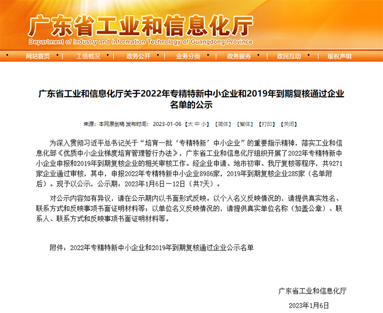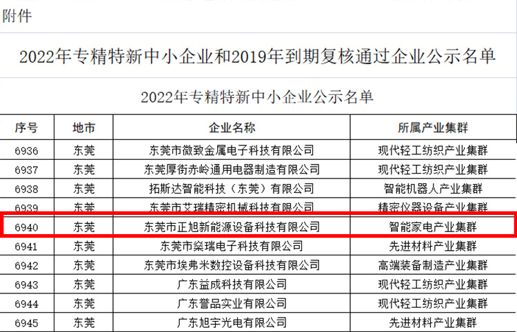 為深入貫徹習(xí)近平總書記關(guān)于“培育一批‘專精特新’中小企業(yè)”的重要指示精神,落實工業(yè)和信息化部《優(yōu)質(zhì)中小企業(yè)梯度培育管理暫行辦法》,廣東省工業(yè)和信息化廳日前發(fā)布2022年專精特新中小企業(yè)和2019年到期復(fù)核通過企業(yè)名單公示(http://gdii.gd.gov.cn/zwgk/tzgg1011/content/post_4077221.html),東莞市正旭新能源設(shè)備科技有限公司順利通過2022年專精特新中小企業(yè)申報審核并進入公示名單。