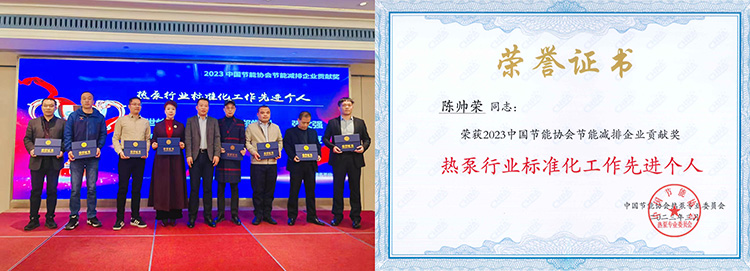會上,中國節能協會熱泵專委會常務理事、正旭新能源公司董事長陳帥榮與紐恩泰、中廣歐特斯,芬尼、生能、美的、格力、海爾、海信日立、利諾瑞特等優秀企業負責代表同期獲評“熱泵行業標準化工作先進個人”稱號,積極肯定了大家在推動熱泵行業標準化工作中的積極貢獻。