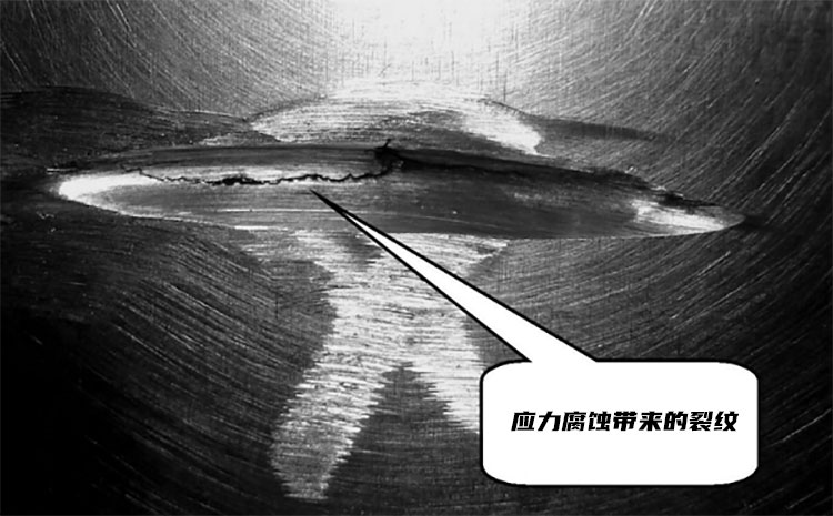 這里講的腐蝕是點蝕,壓力容器中更可怕的是應力腐蝕。應力腐蝕與氯離子濃度關系不是很大,即使微量的氯離子,也會產生應力腐蝕。如果氯離子濃度再高些,點蝕同時會起到嚴重的腐蝕作用。換熱盤管在加工過程中不可避免會產生應力,如果有輕微劃傷,應力集中現象會更加嚴重。盡管在加工過程中也有消除應力的工序,但有這道工序也不能解決問題,因為盤管作為冷凝器其中是高溫高壓的制冷劑,這個高壓產生的力是沒法消除的。況且換熱盤管還處于較高的溫度,有資料表明,溫度每升高10℃,腐蝕的速度增加約1-3倍。