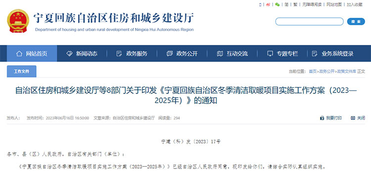 為加快推進寧夏地區冬季清潔取暖項目建設,如期完成清潔取暖各項目標任務,實現城鄉居民清潔取暖、溫暖過冬,持續改善大氣環境質量,助推加快區域經濟綠色發展,寧夏回族自治區于近日發布了《寧夏回族自治區冬季清潔取暖項目實施工作方案(2023—2025年)》(以下簡稱“方案”)。