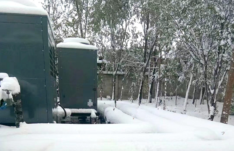 在防雨和防雪上,側出風的采暖熱泵產品會好一些,受雨雪的影響較小;頂出風的采暖熱泵產品,最好為其安裝防雪風罩,防止設備停機時,雪花落在主機的風葉上并堆積,從而造成主機的電機卡死燒壞。
